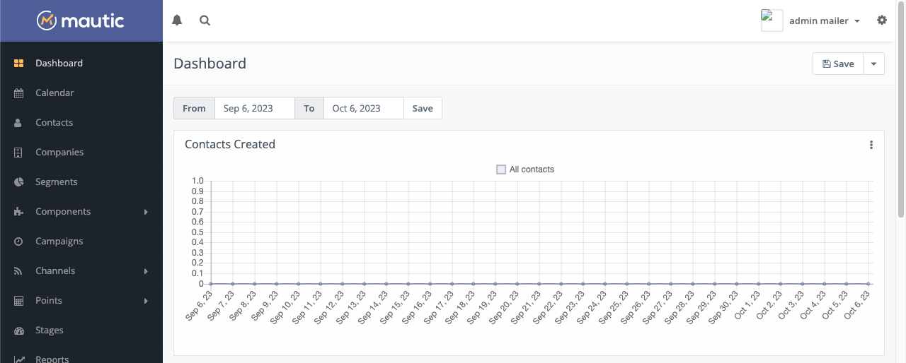 Instalasi selesai dan Anda dapat login ke dashboard Mautic dengan user admin.