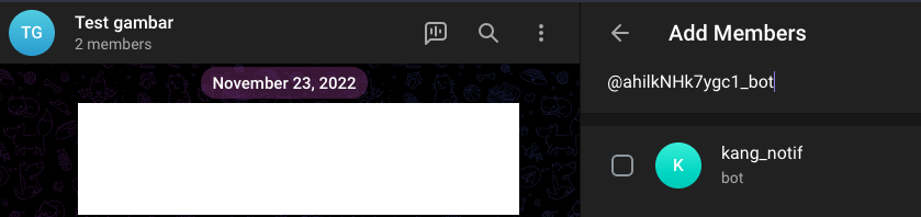 Selanjutnya tambahkan bot kedalam Grup Telegram.