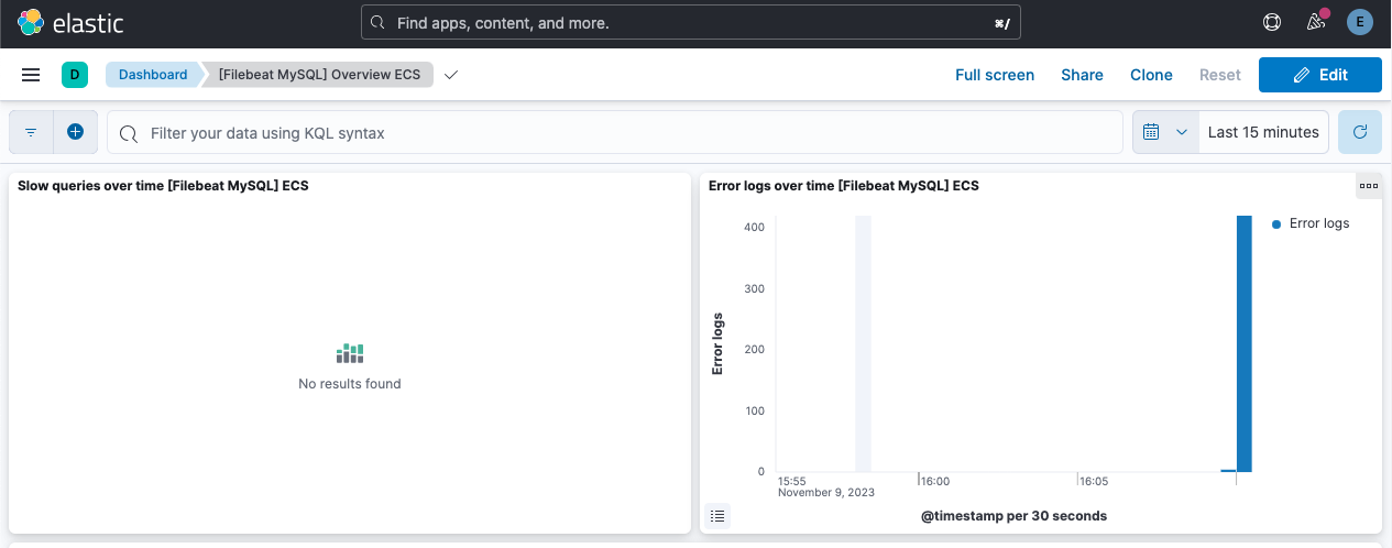 Cek dashboard Kibana untuk memastikan data sudah masuk