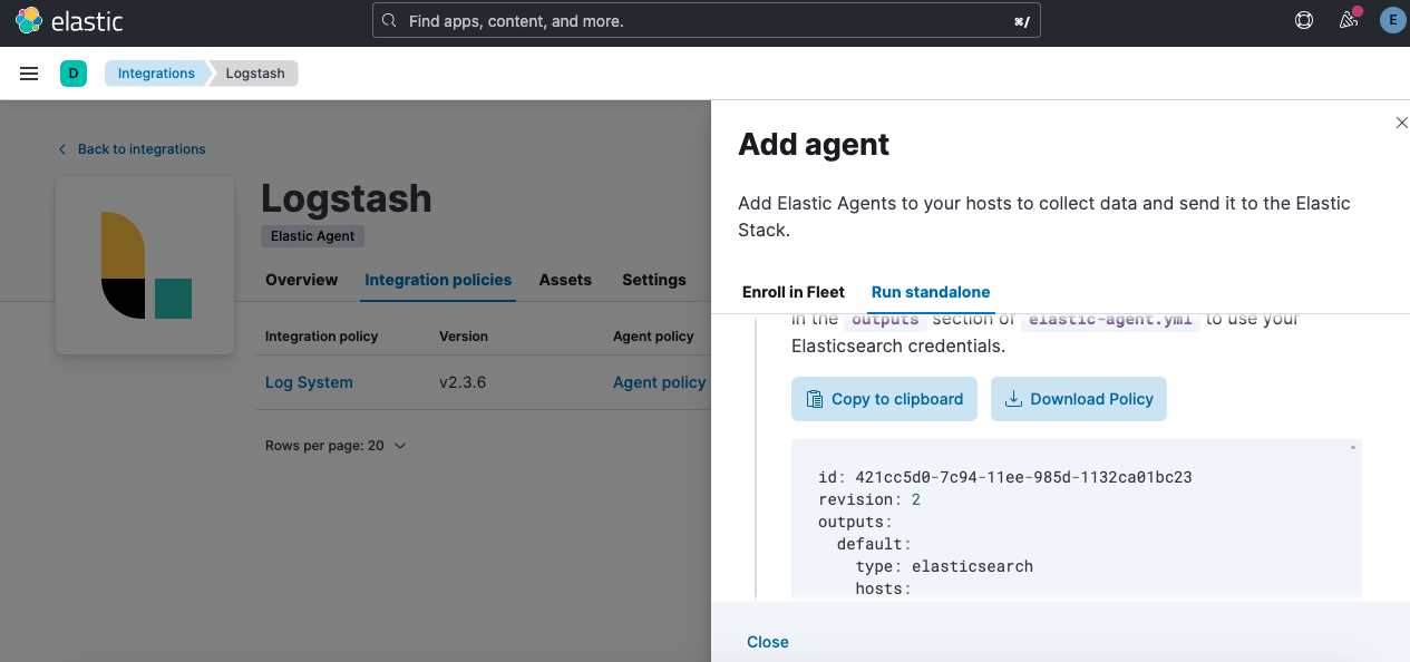 Setelah elastic-agent diinstall edit elastic-agent.yml menyesuaikan policy yang Anda dapatkan saat Add agent.