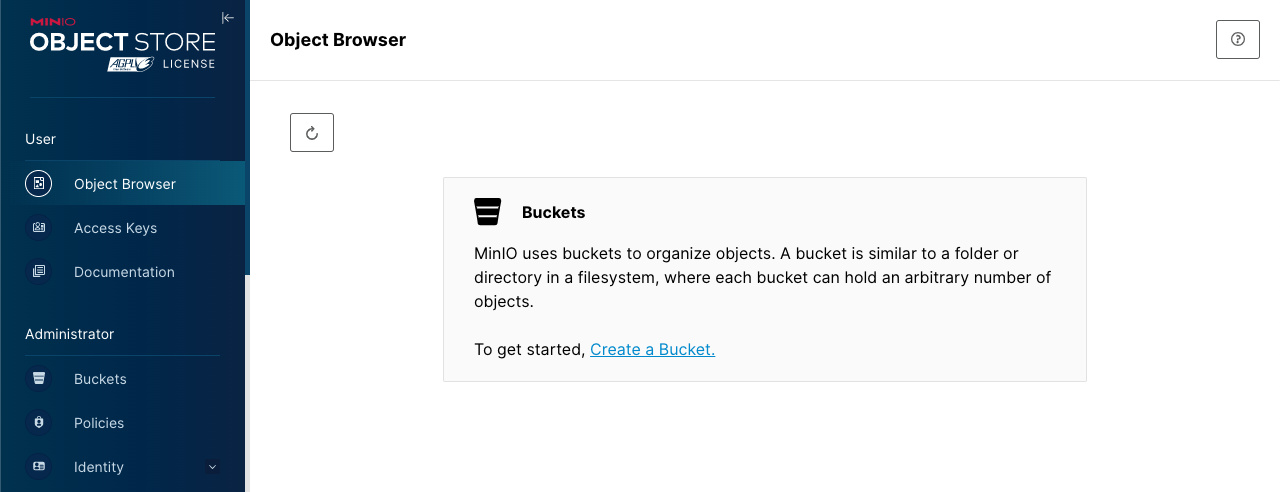 Setelah kontainer berjalan, Anda dapat mengakses MinIO Console melalui: