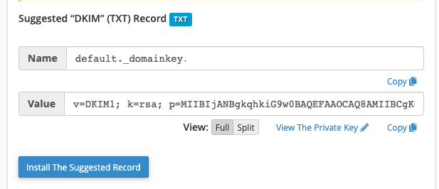 Untuk setting dkim ke DNS klik Install the Suggested Record lalu tunggu propagasi DNS