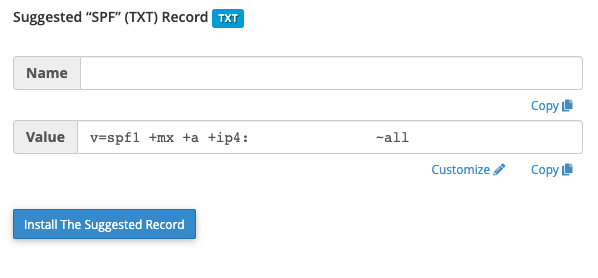 Terakhir klik Install the Suggested Record untuk setting SPF ke DNS