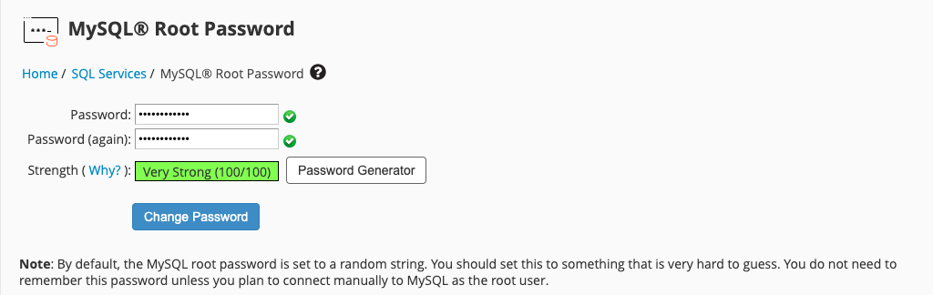 Ketika Anda melupakan kata sandi root MySQL/MariaDB, Anda dapat meresetnya melalui panel WHM atau CLI seperti berikut.