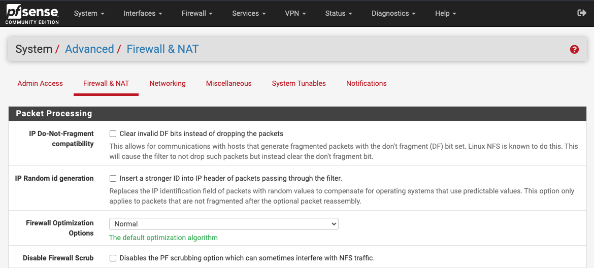 Selanjutnya arahkan ke System / Advanced / Firewall & NAT